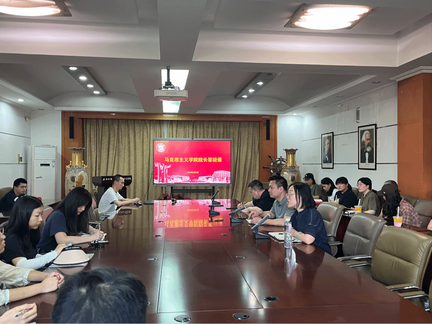 6 月 3 日上午,马院召开2024年第2期院长答疑课。院长肖述剑教授聚焦学院2022级研究生的科学研究、就业规划等问题一一为学生答疑解惑。学院党委副书记徐喆、研究生秘书李满意参加答疑课。