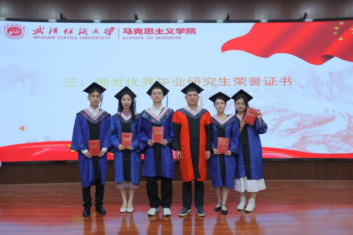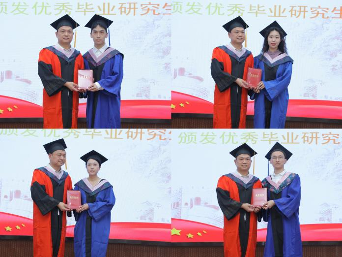马院院长肖述剑教授首先宣读了成人文学 2025届全体毕业研究生名单及优秀毕业生表彰决定,为优秀毕业生颁发荣誉证书。并逐一为毕业生颁发毕业证书、学位证书与毕业纪念品,为毕业生拨穗正冠。