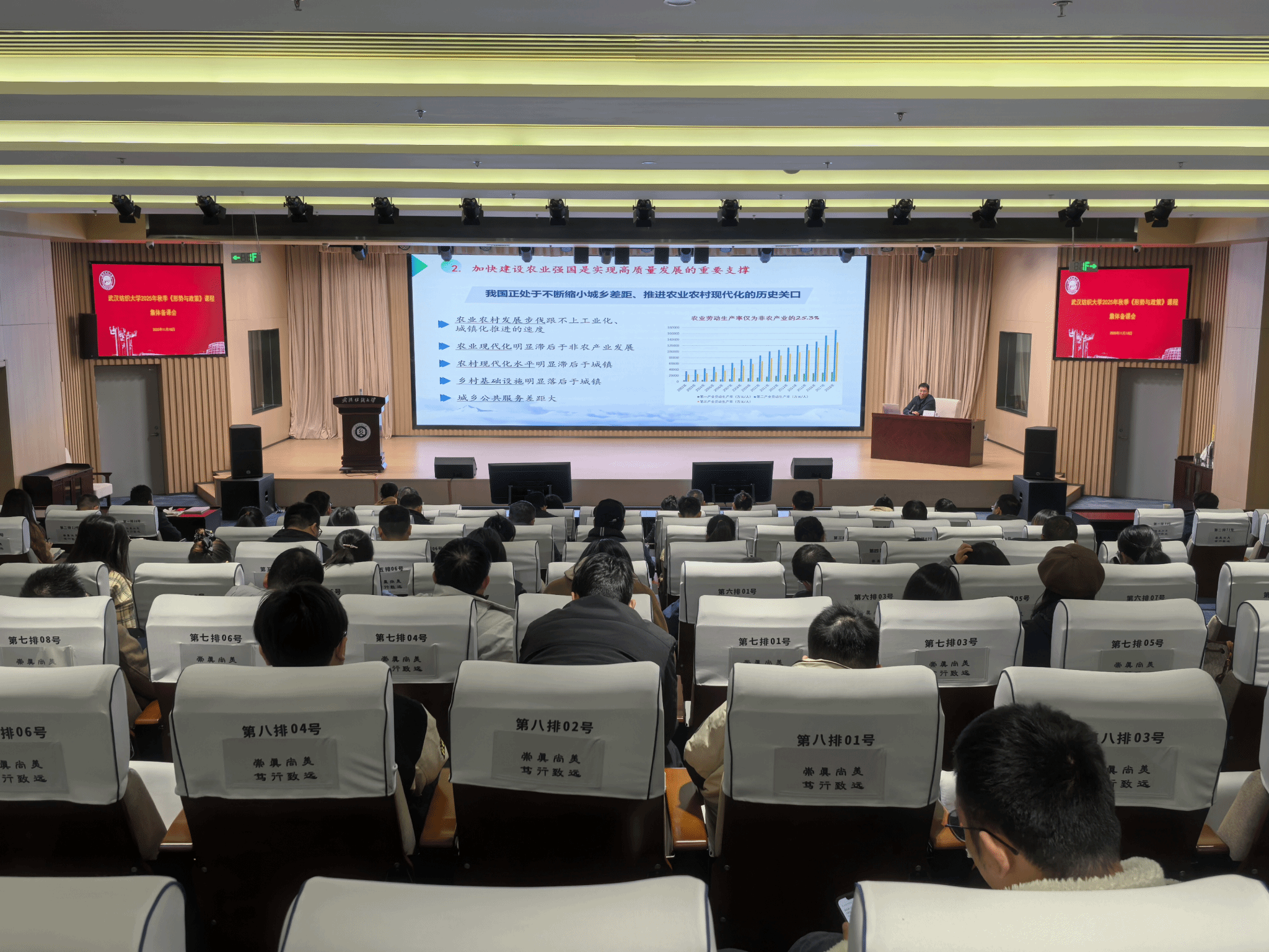 霍军亮以《端牢中国饭碗,筑牢强国根基--加快建设农业强国的形势与政策解读》为主题,结合多年研究成果,从时代呼唤:为何要加快建设农业强国;宏伟蓝图:我们要建设什么样的农业强国;路径探索:如何扎实推进农业强国建设等三个方面展开了详细阐述。他指出,加快建设农业强国是顺应时代发展的必然要求,关乎国家粮食安全与民族复兴伟业,并分享了华中农业大学在服务乡村振兴中的实践经验,强调高校应发挥科研与人才优势,推动农业现代化。为在场教师呈现了一场兼具理论高度与实践深度的教学示范。