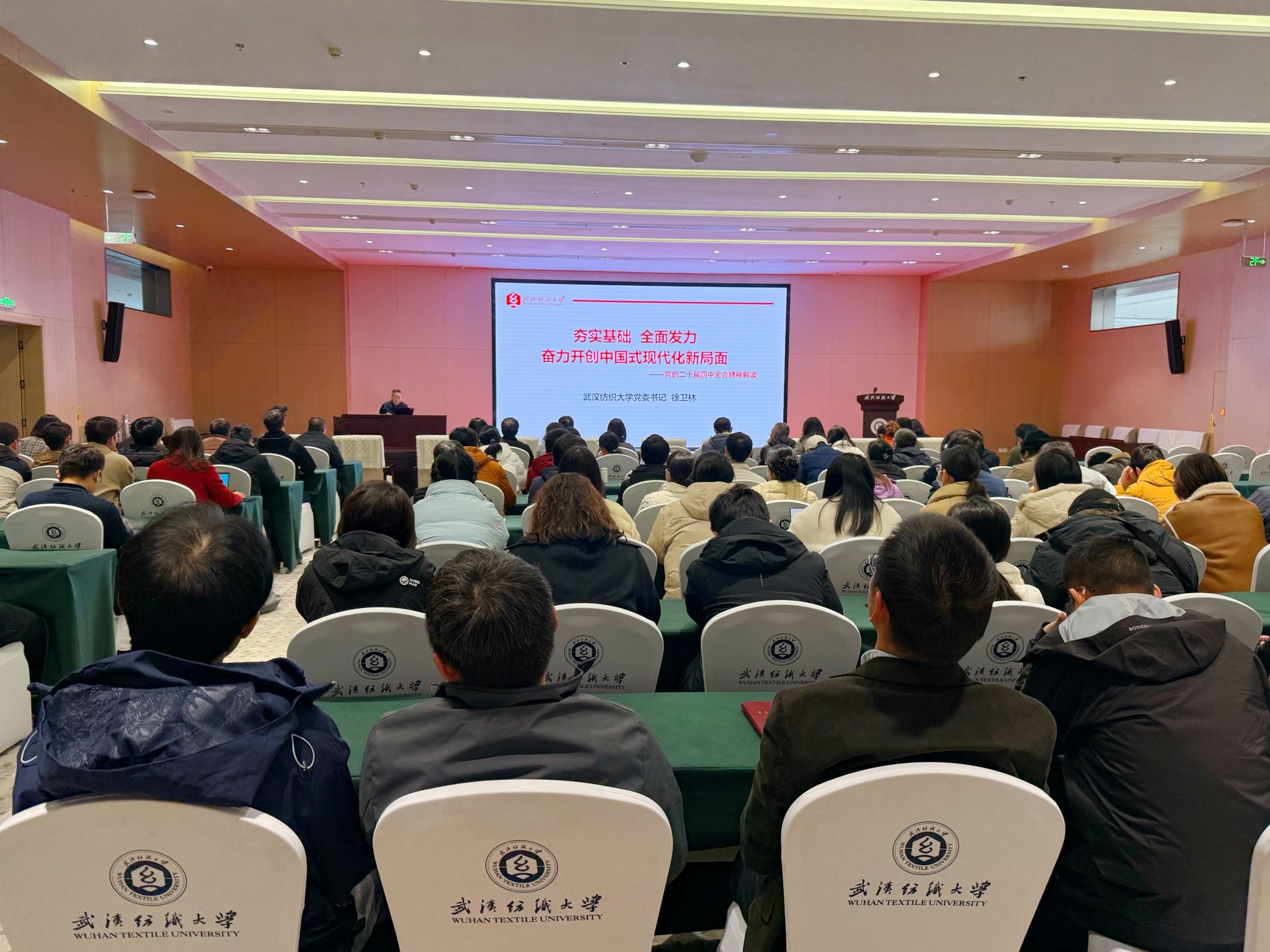为深入学习宣传贯彻党的二十届四中全会精神,根据校党委统一部署,12月18日下午,校党委书记徐卫林院士以《夯实基础 全面发力 奋力开创中国式现代化新局面》为题,为成人文学 和纺织新材料与先进加工技术全国重点实验室师生作党的二十届四中全会精神专题宣讲报告。报告会由成人文学 党委书记邹茜主持。