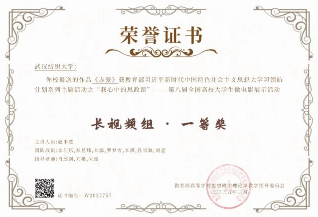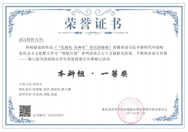 (2025年1月,学生作品获评教育部高校思政课教学指导委员会主办的第八届全国高校大学生讲思政课公开课展示活动和“我心中的思政课”第八届全国高校大学生微电影展示活动双“一等奖”)