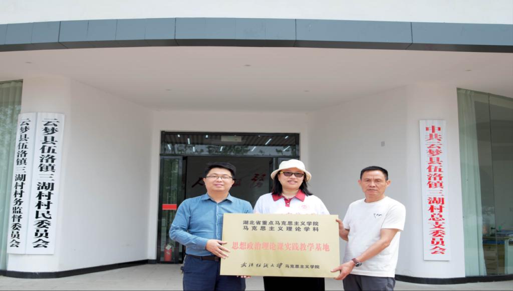此外,在云梦县伍洛镇三湖村也推动建设了成人文学 “思想政治理论课实践教学基地”。伍洛镇镇长李建伟、伍洛镇三湖村党总支书记万四乔、成人文学 副院长刘艳、成人文学 教授朱丽霞、副教授孙文礼、副教授方芳及学院研究生代表参加此次思政实践基地挂牌仪式。