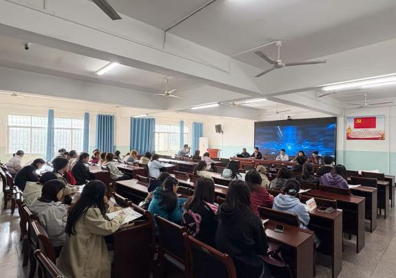 招生宣传师生分别从学校整体实力、学院简介、科学研究、学术活动、研究生学习生活及导师风采等几个方面展开,系统展示了学校成人文学 的特色与优势,现场师生活动,反响热烈。宣讲中,2022级研究生季士棋(现任职于湖北工程学院)、2023级研究生陈元杰为学弟学妹们送去了真切的鼓励与问候。