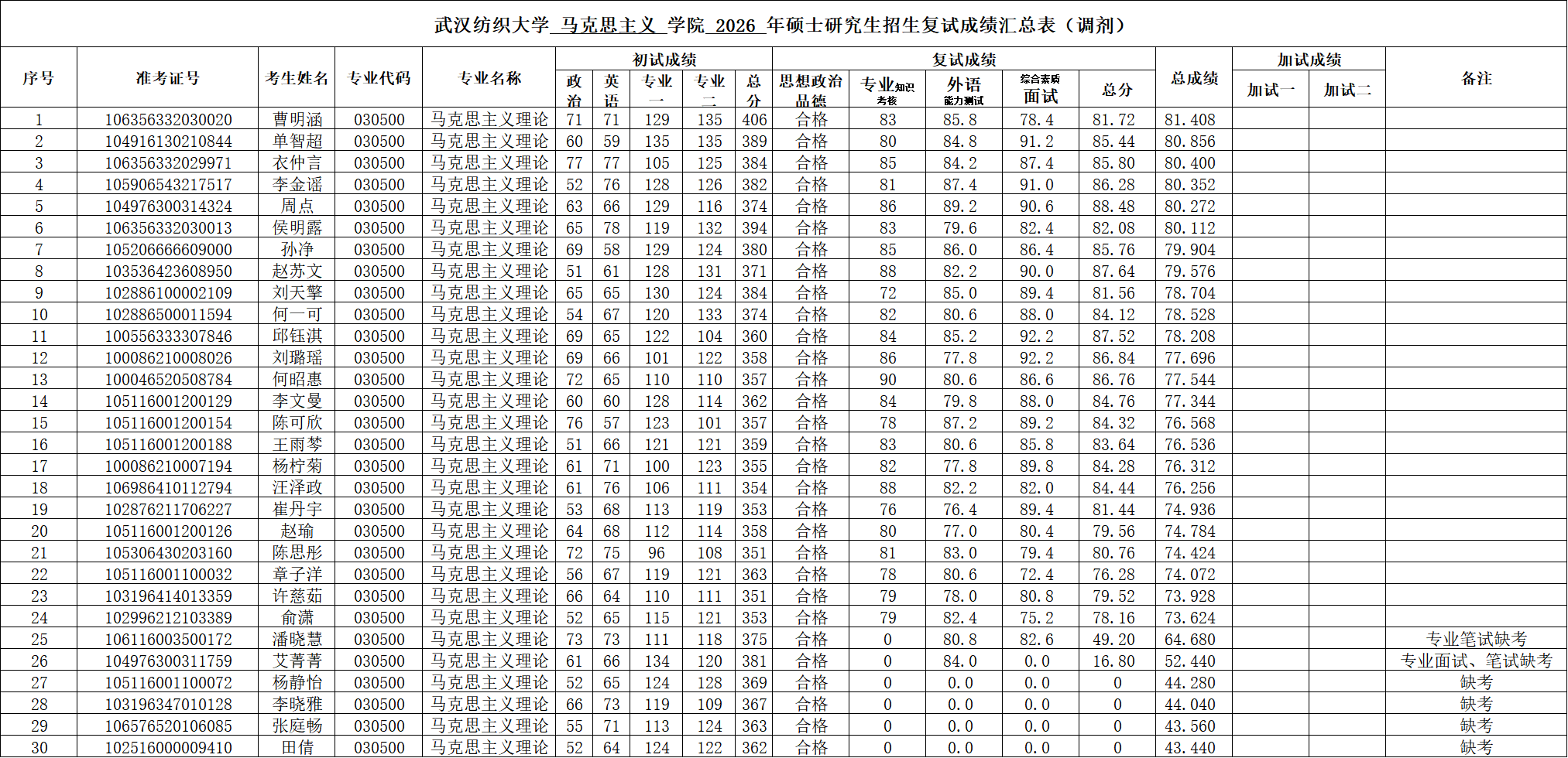 成人文学 2026 年硕士研究生招生复试成绩公示(调剂)