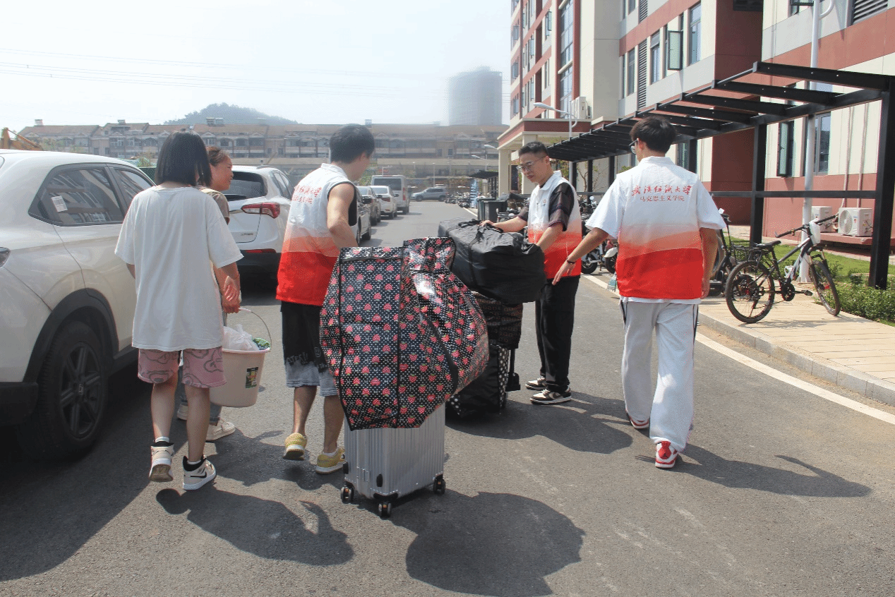 迎新过程中,志愿者们热情地接待每一位研究生新生,“一对一”引导新生顺利进入宿舍楼办理入住手续,志愿者们协助搬运行李,确保新生能够轻松入住。同时,学院还设立了“一站式”入学手续办理区,通过志愿者们的高效协作,迅速完成人事档案、党团员材料的收集、审核,并现场发放校徽、校服、学生手册及学院纪念品等,让新生深刻感受到学院的关怀与重视。