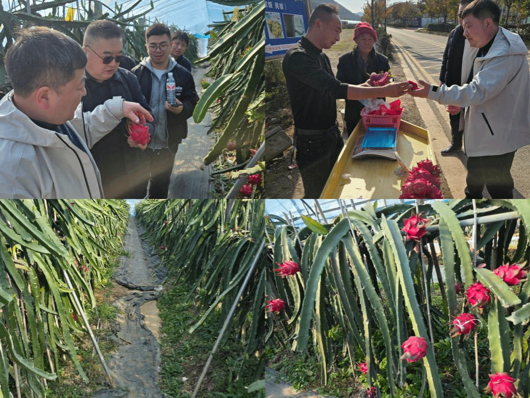 12月6日下午,师生团队又来到南漳县双泉村,实地探访了当地的特色产业——火龙果产业园。师生们深入种植基地,近距离观察火龙果的生长环境与田间管理过程,详细了解了火龙果的种植技术、市场销售情况以及产业经济效益。通过与当地果农交流,师生们对乡村振兴战略有了更加直观和深入地理解,认识到特色产业在推动农村经济发展、提升村民生活水平方面的重要作用。