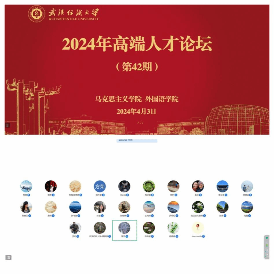 为进一步高质量推进学校学术生态建设,搭建学术交流平台,营造浓厚的学术氛围,持续提升教师科研学术水平,4月3日,由成人文学 和外国语学院承办的第42期高端人才论坛顺利举行,两学院聘用的高层次人才、参加2023年度考核的博士专任教师和教授委员会成员参加论坛,论坛由成人文学 杨豹教授主持。