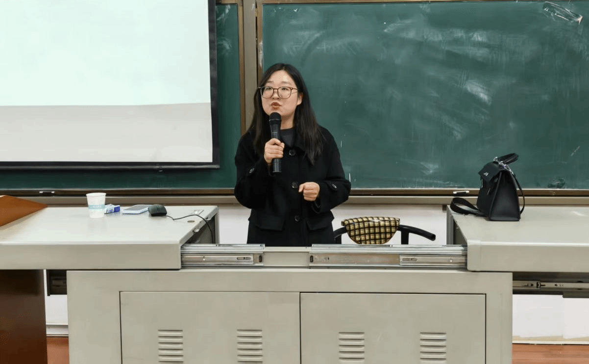 随后,王琳结合自身跨社会学专业到成人文学 任教的经历,阐明了深耕家庭社会学、农村社会学及大学生思想政治教育研究的学术方向,强调马克思主义理论学习与社会学思维、方法融合的重要意义。她以亲切坦诚的交流方式,鼓励同学们打破专业壁垒,在课程学习、社会调查与学术研究中主动沟通、积极探索,现场营造出轻松活跃的学术交流氛围。