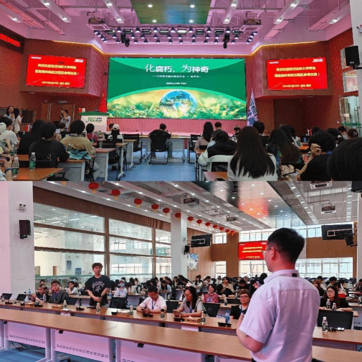 首先,师生们共同参观了格林美资源循环生态场馆,该场馆围绕城市矿山循环产业园的创建背景、主营业务以及未来发展讲述了格林美20余年来的绿色奋斗、绿色发展之路。在废物艺术主题公园学生驻足观看许久,所有艺术作品均采用废钢铁、齿轮、轮胎等旧零部件制造,向同学们展示了工业文明、绿色发展与低碳未来理念。