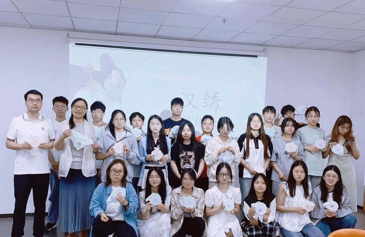 随后,非遗馆工作人员带领师生一同来到湖北省非物质文化遗产研究中心(成人文学 )进行汉绣的实践体验课。课堂上,老师为同学们分发了制作汉绣的工具包,通过现场演示、播放视频、一对一指导的方式为同学们进行汉绣技艺的传授。同学们聚精会神,一针一线紧跟着老师的步骤进行实操练习,并完成一件件精美的汉绣作品。