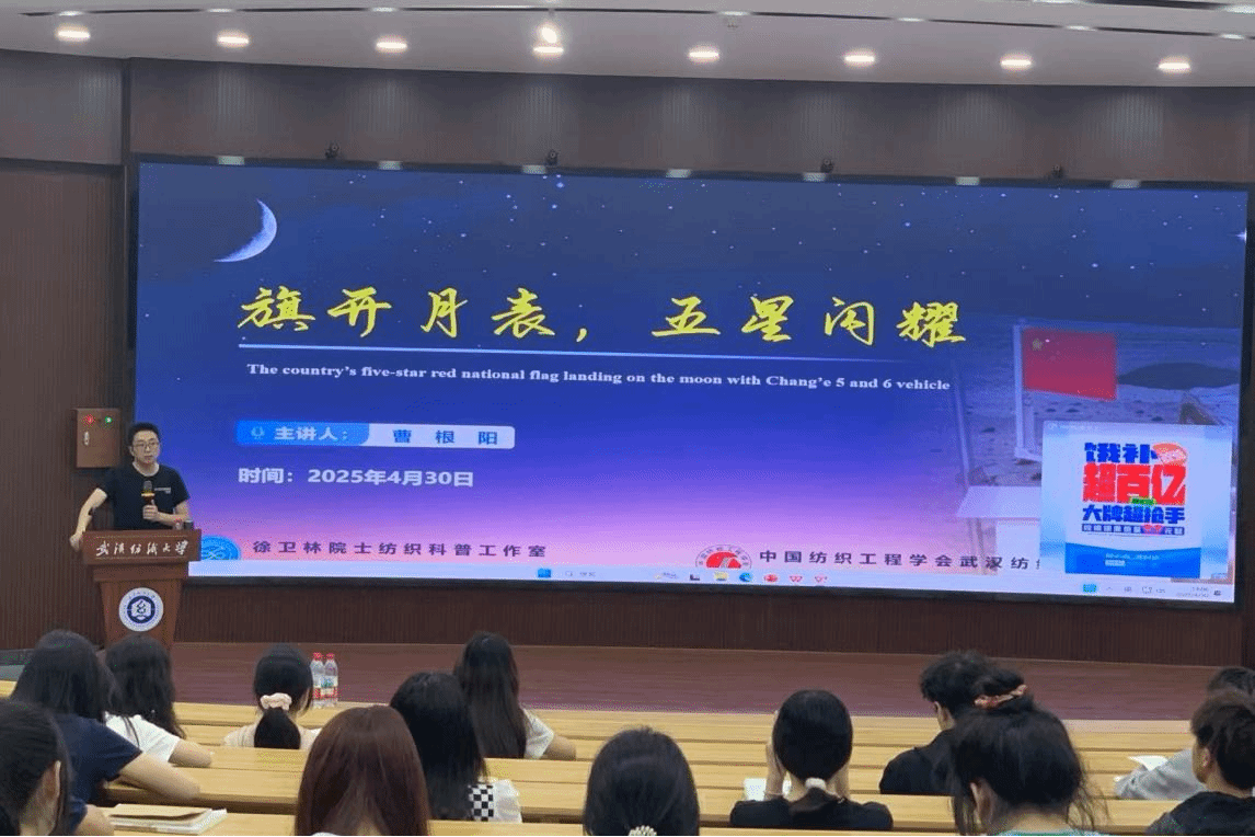 课程尾声,曹根阳寄语青年学子:“从月面国旗到指尖纤维,科技强国的每一步都需要接续奋斗。希望同学们既能仰望星空,又能脚踏实地,在未来的领域里织就属于自己的‘中国红’。”