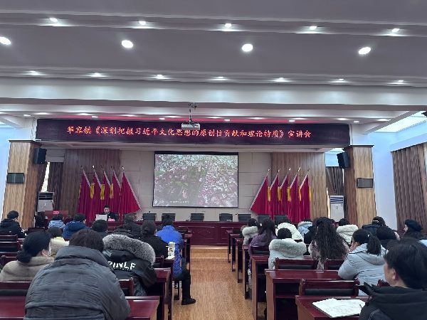 活动的首场宣讲在华容镇政府会议室举办,由鄂州市华容镇副镇长高振喜主持。成人文学 院长肖述剑教授以《深刻把握习近平文化思想的原创性贡献和理论特质》为题,对习近平文化思想进行了集中宣讲,宣讲中穿插了当地乡村振兴所带来的乡情村貌改变的具体实例和群众身边精神文化生活丰富的鲜活事例,深受在场的镇、村两级党员干部的欢迎。