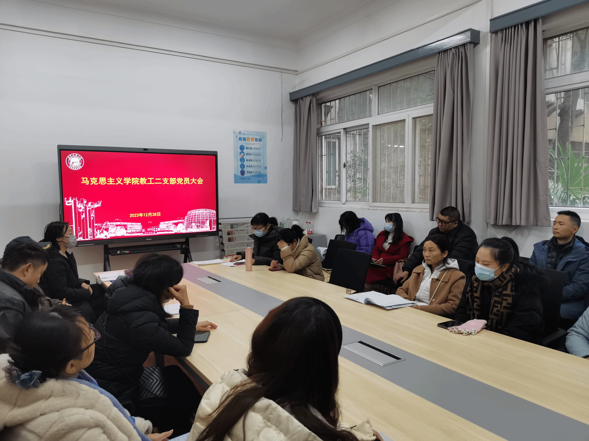 2023年12月28日下午,成人文学 教工二支部在学院115会议室召开支部党员大会。大会主要讨论了支部发展教师党员,并进行了民主评议党员工作。会议由支部副书记陈慧同志主持,二支部全体党员参会。