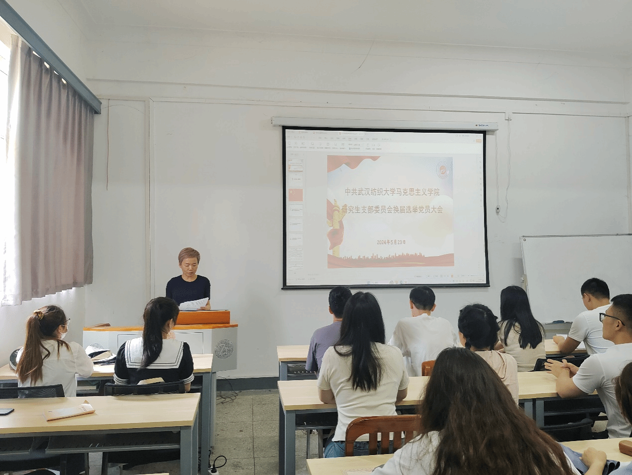 5月23日下午,成人文学 研究生党支部在南湖校区东配楼118教室召开研究生党支部委员会换届选举党员大会,本次大会旨在总结过去一年党支部的工作成果,选举产生新一届党支部委员会,为学院党建工作注入新的活力。会议由学院研究生党支部书记徐莺主持,研究生党支部全体党员参与。