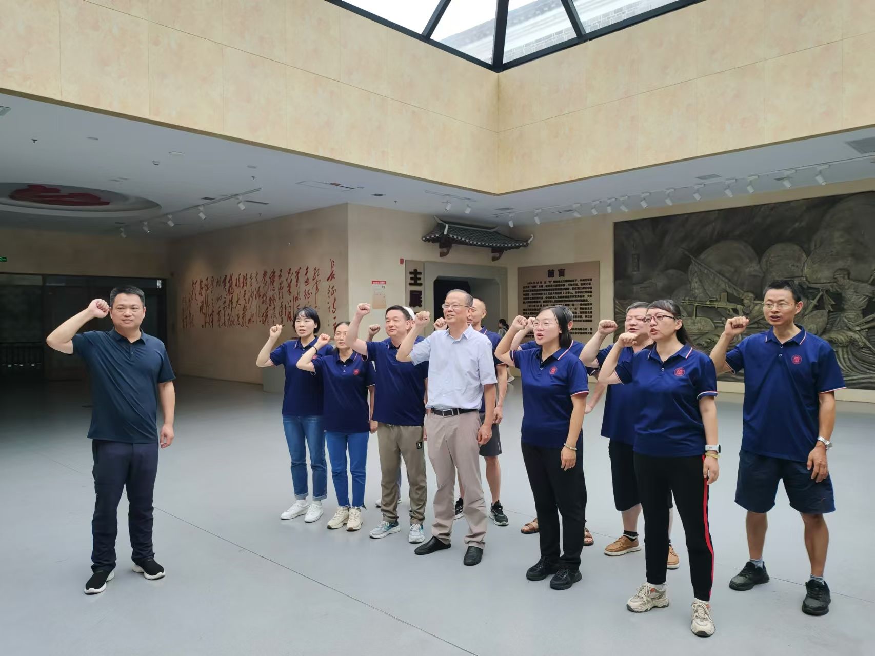 学院院长肖述剑带领全体教师党员重温入党誓词。在黎平会议纪念馆大厅内,全体党员教职工庄严地举起右拳,面向党旗重温入党誓词,一声声誓言铿锵有力,表明了党员们不忘初心、牢记使命,赓续红色基因的决心,进一步增强了党员的责任感和使命感。