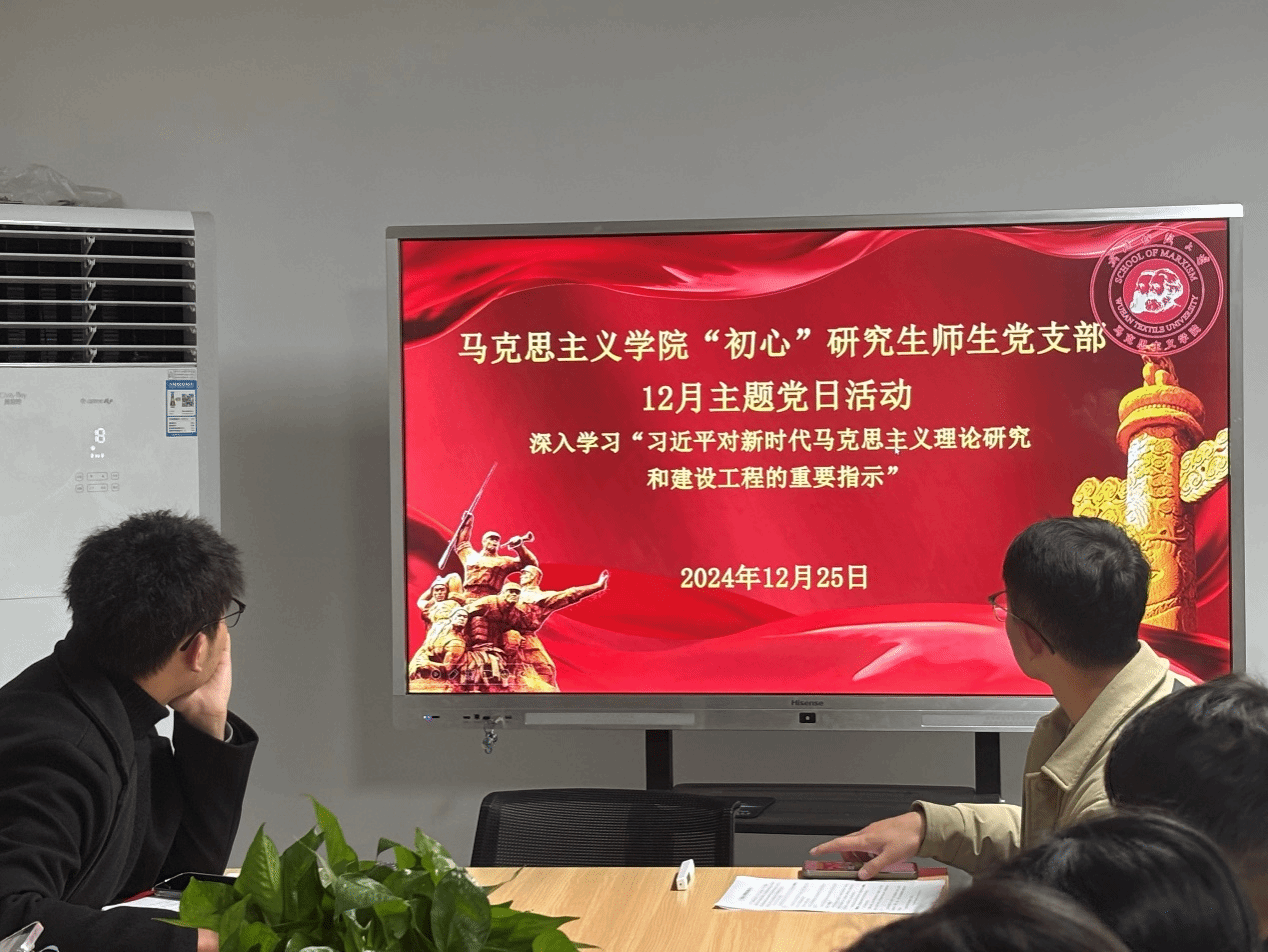 12月25日,成人文学 “初心”研究生师生党支部组织开展了以“深入学习习近平新时代马克思主义理论研究和建设工程的重要指示”为主题的党日活动。会议由支部宣传委员汪灿灿同志主持,支部全体学生党员同志参加学习。