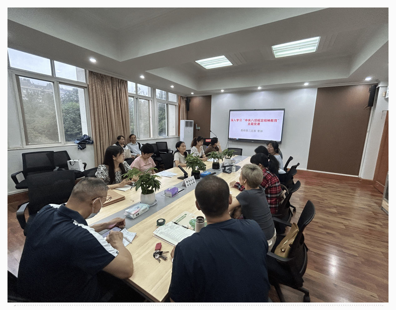 5 月 22日下午,成人文学 教师第二支部在学院 N206会议室开展“深入贯彻中央八项规定精神学习教育”主题党日活动。支部书记常沛“深入贯彻中央八项规定精神学习教育”为题讲授专题党课,全体支部党员参加活动。