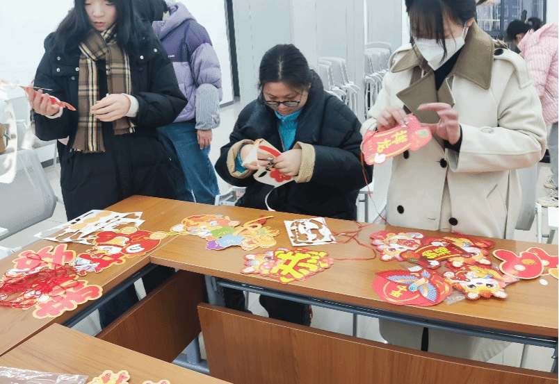 活动当天,“初心”实践团的志愿者贴窗花、拉花旗,大家齐心协力、互帮互助。在社区工作人员的引导和帮助下,经过志愿者的努力,社区党员群众服务中心的大厅焕发生机、喜气洋洋。