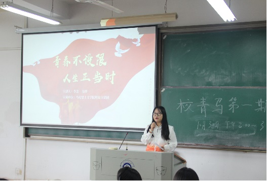 为深入推进青年马克思主义者培养工程,引导青年学生骨干坚定理想信念,10月30日下午,成人文学 “青马”班第一期培训在阳光校区3号楼218教室举行。本次培训由成人文学 “初心”宣讲团围绕“青春不设限,人生正当时”主题展开宣讲,“初心”宣讲团学生骨干梁爽主持,宣讲团成员李念、徐梦主讲,学校“青马”班全体学生骨干参加。