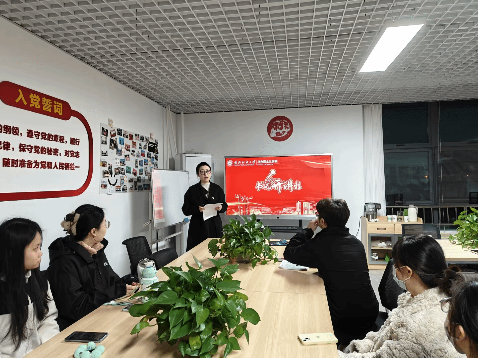 11月26日晚上,成人文学 “书记开讲啦”第三讲在15栋研究生公寓四楼“一站式”学生党建共享社区顺利举行。本次专题讲座由成人文学 研究生党支部书记蒋彭阳老师主讲,全体研究生党员参加学习。